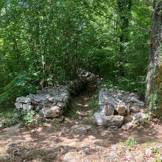 [Caption: Hiking through the maze-like stone walls in the mountains around Collemacchia.]