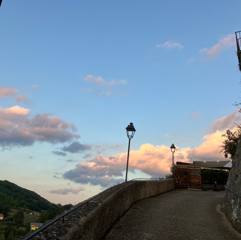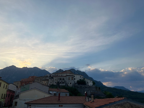 [Caption: Sunset from the streets of the town of Scapoli.]