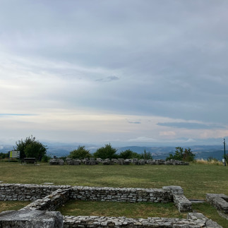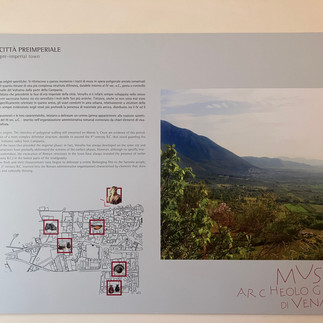 [Caption: Some basic information on local Samnite sites and archaeological finds at the Venafro Archaeology Museum (top). Revisiting the ancient Samnite theatre-temple complex Pietrabbondante, before, during, and after a sudden thunderstorm (middle and bottom).]